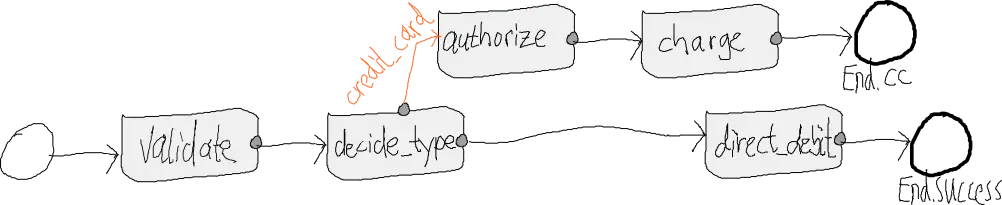 An output is a combination of a semantic and a signal. A part of the return value of the invoked task is interpreted as a signal, and that’s how Trailblazer picks the connection to the next task to take.